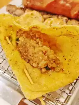 The grilled tofu skin is crispy and fragrant, 🥰 with rich garlic 🧄 in the middle, very flavorful.