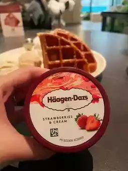 Includes a snack, Haagen-Dazs ice cream cup, and a drink.