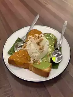 🥥 Coconut Ice Cream Toast (Milk Tea Sauce + Pandan Sauce Mix)