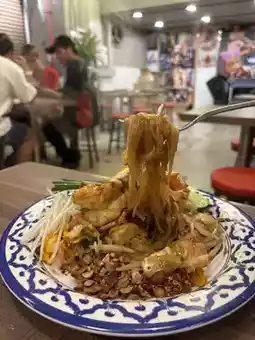 The omelette is packed with seafood, including fresh shrimp, oysters, and squid, full of umami flavor. Served with Thai sweet chili sauce, the overall taste is somewhat similar to Taiwanese oyster omelette. However, theirs is more moist, not the dry-fried type, so the texture is quite different from traditional Thai oyster pancakes.