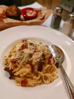 ๐ Carbonara: Rich egg and cream sauce coats al dente pasta, crispy bacon complements the spicy black pepper, savory and full-bodied.