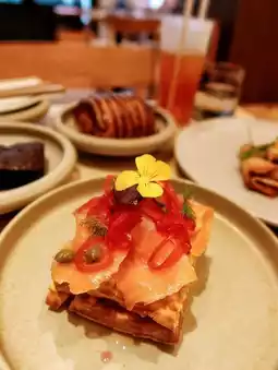 🥞 Smoked Salmon Waffle (HK$138): The smoked salmon is savory, and the waffle is thick, slightly sweet with a milky aroma.