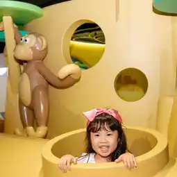 Adults can try shooting with a wide-angle and low angle to highlight the unique hollow patterns on the treehouse roof. Combined with the kids’ dynamic movements, the photos become more lively and rich!