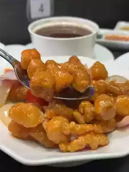 The sweet and sour pork is crispy and tender, with smaller pieces than usual so you can enjoy it bite by bite. The sweet and sour balance is just right, paired with onions and bell peppers, making it very appetizing.