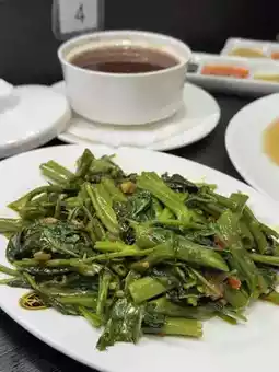 A meal must have vegetables. The tender water spinach with traditional Singaporean sambal sauce is super flavorful.