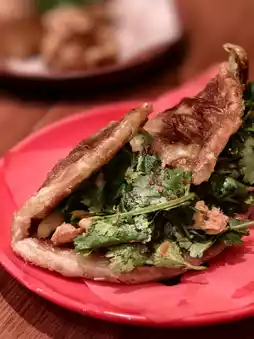 The coriander πΏ shredded chicken hand-grabbed pancake π« is a must-order for coriander lovers! The pancake is crispy on the outside and soft inside, filled with lots of coriander, giving a refreshing taste. The shredded chicken is slightly spicy and very flavorful.