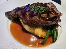 • Slow-cooked steak with "planet" sauce platter