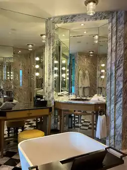 Step into the room and take in the vast sea view. The deep blue water meets the sky, and the shimmering sea surface glistens with a metallic sheen under the sunlight. In the distance, the bustling buildings of Victoria Harbour complement the sea view, creating an unreal beauty.