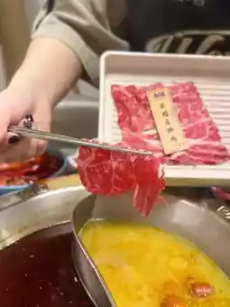 Multiple soup bases to choose from, highly recommend trying the signature "Beef Station Special Spicy Hotpot," with ingredients imported from Sichuan. The broth is rich, mildly spicy yet numbing and fragrant, with full spiciness that intensifies as it simmers. The dual-flavor pot combines golden soup with fish maw chicken broth, which is milky white and contains plenty of fish maw.