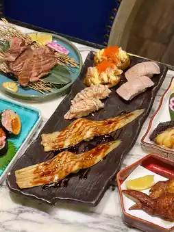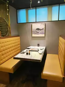 The interior is spacious and comfortable, decorated mainly in stylish black tones, with sake bottles and hanging paintings full of Japanese flair.
