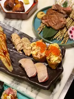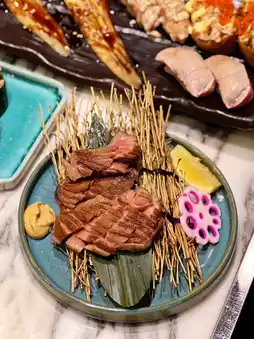 The medium fatty tuna belly is covered with delicate fish oil patterns, lightly seared to release a fragrant oil aroma, fresh and sweet, almost melting in your mouth.