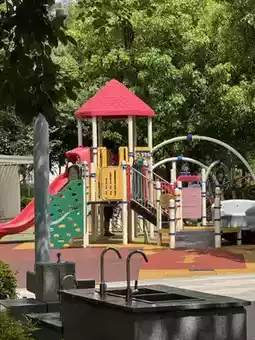 The park offers a variety of facilities, including an inclusive playground where children can enjoy slides and climbing nets to burn off energy.