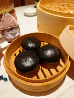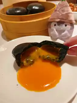 The charcoal custard buns are also a must-try🤤 Tear one open from the center and watch the sinful custard filling pour out😍 Fragrant and tempting❤️ The charcoal bun is soft and tasty, and dipping it in the custard sauce makes it savory and delicious😋