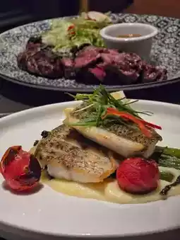 The sea bass is thick, with a slightly crispy skin, tender and smooth flesh, and a fresh, sweet flavor. The mashed potatoes and spinach underneath are also very tasty.