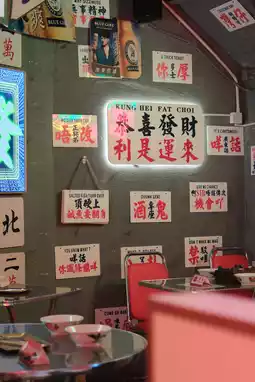 MouMouFen Skewers features different types of skewers. This is my first time visiting, and the atmosphere inside the restaurant is very authentic. All the songs playing are Cantonese songs, creating a great vibe! Besides that, there are multiple neon lights and Hong Kong-style minibus signs for everyone to take photos with. The entire restaurant’s decoration and design revolve around the theme of Hong Kong, showing a lot of thoughtfulness!