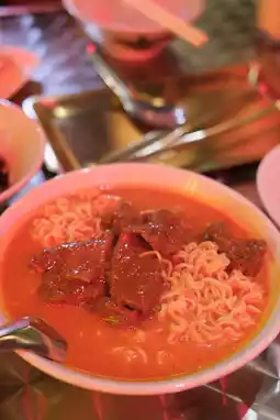 The satay soup base is rich and aromatic, the beef chunks are large and generous, with a strong flavor and a slight sweetness, very satisfying.
