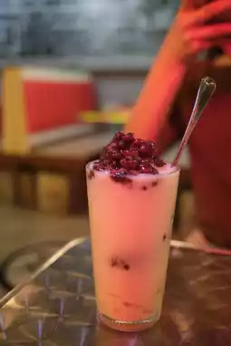 Contains milk pudding, smooth texture, and a strong sesame flavor!