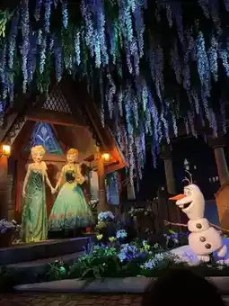 World of frozen is a must experience in Hong Kong Disneyland. Embark on a delightful boat ride through the North Mountain, where you can witness Elsa's magical powers and see the magnificent Ice Palace. The journey is filled with memorable scenes and beloved songs from the movies. This magical journey involves surprises like a backward and forward plunge down short waterfalls, so may get wet! It’s wonderful.