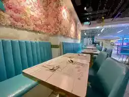 ✨Boaz House is truly an amazing place. It is a Christian Mediterranean specialty restaurant located inside Tsuen Wan Yuelai Square Mall in Hong Kong. The interior is decorated with vintage lighting and large pastel floral walls, complemented by sea-blue seats and white dove lamps hanging from the ceiling, creating a soft and comfortable ambiance. The napkins are printed with various Bible verses, and worship music is played from time to time, giving it a strong religious character. It’s also a fantastic spot for taking photos and checking in!📸🌸🎶