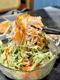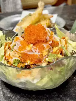 I always have to order the Tornado Salad, full of crab roe and crab sticks, plus crispy chips, crunchy and flavorful with every bite.