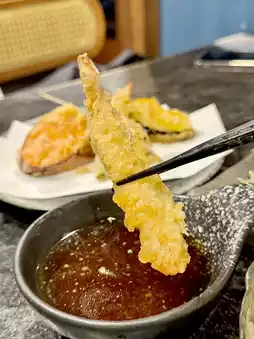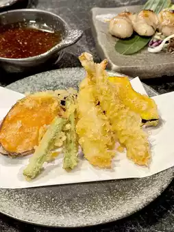 The assorted tempura is freshly fried, very light, crispy, and deliciously sinful.