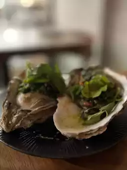 Grilled oysters 🦪 served with watercress and aged kidney sauce were very unique. The oysters were juicy and sweet, with a flavor so fresh and delicious it’s unforgettable.