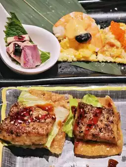 Here, you can choose from a wide selection of sashimi. The thick-cut salmon is rich and flavorful, the swordfish belly is sweet, the sweet shrimp is fresh, and the ark shell is delightfully crunchy. 👍