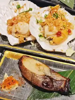 The steamed scallops with garlic and vermicelli 🧄 are incredibly fresh, and the vermicelli absorbs all the garlic and scallop flavors—absolutely amazing! 🥰 The Saikyo-style grilled halibut 🐟 has crispy fish skin and tender meat, complemented by the salty-sweet miso flavor. 🤤 It's truly delicious.
