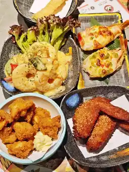 Other highlights among the cooked dishes include honey mustard shrimp balls 🍤, cheese golden sauce grilled prawns 🦐, fried chicken cartilage bites, and sesame chicken wings 🍗—a super rich selection!