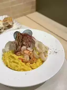Golden sauce, rice grains full and plump, sprinkled with saffron on top, looks great👍🏻