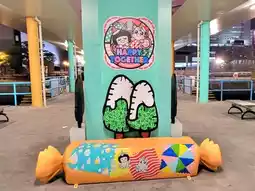 It used to be long occupied by homeless people, but today it has been completely renovated and reopened for public use, featuring cute Chocolate Rain figurines. Everyone can come here to take photos and then visit Kwun Tong Promenade.