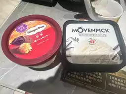 Finally, we took Häagen-Dazs and Mövenpick ice cream. Häagen-Dazs had a special rainbow flavor, which was delicious—we each had one. For Mövenpick, we got the vanilla flavor. The king-sized durian popsicle was also very tasty 😆