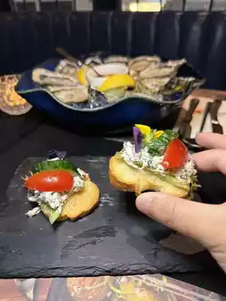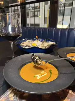 Big entrance strong Juicy! This time I came to this bistro in Sheung Wan to celebrate my birthday. I chose a set for two. The appetizer was black truffle crab meat toast, green apple with Parma ham salad. The set also had two glasses of red and white wine, and its seafood lobster soup. The next course was Japanese oyster and pumpkin cream sauce pasta. The best dessert was the Hojicha caramel compote. The compote was sweet and smooth. The master painted the plate with great exquisiteness.