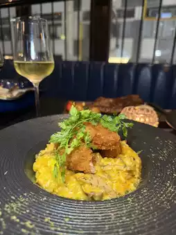 Deep Fried Oyster Risotto with Creamy Pumpkin Sauce