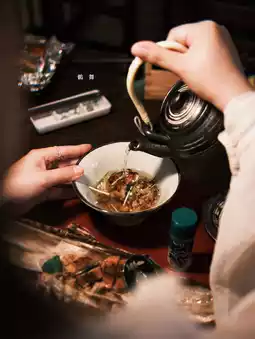 3️⃣ Pour broth over it to make chazuke (tea rice)