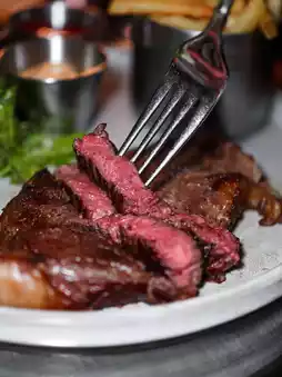Medium-rare wagyu with a pink center, charred on the outside, tender meat☺️ Served with crispy fries and mixed vegetable salad, dipping in spicy mayo adds extra flavor~