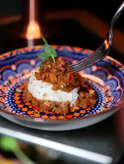 A favorite Burrata Cheese paired unexpectedly well with Sichuan Dan Dan sauce😍 The cheese is soft and creamy, combined with spicy and peanut aromas, innovative and delicious🥰