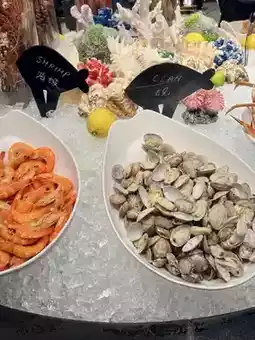 The seafood cold platter is fresh and firm, with the stir-fried clams and typhoon shelter crab legs bursting with aroma. Both the Chinese soups and Western-style roasted beef ribs are of excellent quality. The sweetest surprise is the dessert corner, where the chocolate fountain and colorful macarons are kids’ favorites. This is a joyful feast that delights both the palate and family atmosphere.
