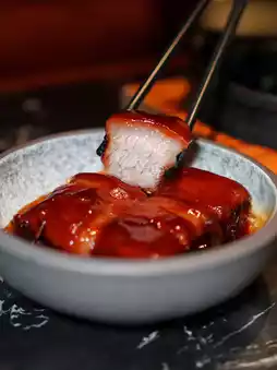 Dongpo pork is made by slow-cooking half-fat, half-lean pork belly with sauce for a long time. The texture is soft and tender without being greasy, combined with thick sauce that is savory and sweet😚