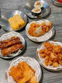There are over 10 kinds of Korean snacks made to order with good quality. The Korean pancakes and seaweed rice rolls are freshly made and taste great🐔. I tried the cheese fried chicken sprinkled with rich cheese powder, which was crispy🍗. The kimchi pancake was cooked to a smoky, chewy, and crispy perfection. Also, the sweet Korean yuzu single-bone chicken wings and rolled omelet were quite good🍳.