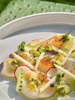 The dessert area is the most enchanting, with various cakes and macarons designed by a French pastry chef, evoking the charm of a Parisian street corner—small yet richly layered. The atmosphere is serene, and the service is warm, making it an excellent choice for an afternoon escape from the city's hustle and bustle. An elegant lunch for a moment of self-reflection should begin just this quietly.