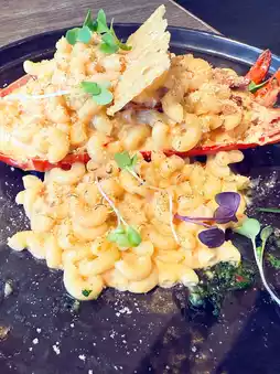 The lobster mac and cheese is very popular. Every time I visit, I see many customers ordering this dish. Perhaps because for under $200, you can get a main course with half a lobster, which is a great value compared to other dishes. Mac and cheese is perfect for kids, with a strong cheese flavor and small pasta pieces that are easy to eat.
