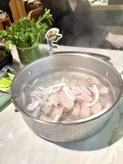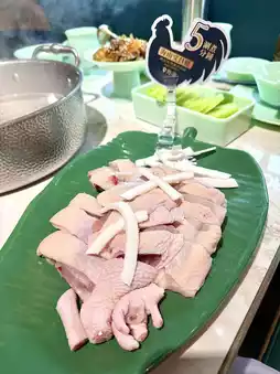 The soup base is made from four coconuts, very sweet and refreshing, with plenty of coconut meat. The chicken used is Hainan Wenchang chicken. Once the soup boils, add the Wenchang chicken and cook for 5 minutes. There’s even a funnel timer on the table, very thoughtful❤️. The Wenchang chicken is tender and smooth, absorbing the coconut soup, making it especially sweet and delicious!