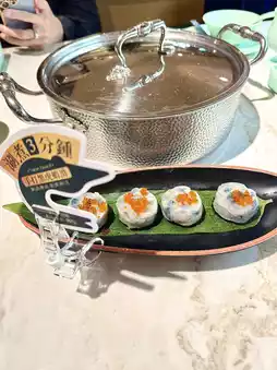 A plate of black tiger prawn paste comes with four pieces. The prawn paste is bouncy and fresh, with a handmade texture that’s even more flavorful. It’s topped with some crab roe for garnish. Just dip and cook for 3 minutes, so fresh and tasty🥰.