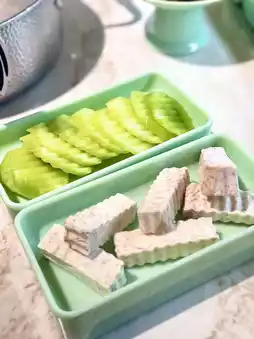 The lettuce stems are sliced into pieces, bright green in color, with a fresh, crisp, sweet, and refreshing taste!