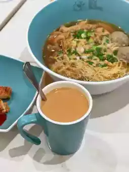 A drink is included with the set meal. The Hong Kong-style milk tea has a prominent tea flavor with a rich milk taste, smooth and silky on the palate.