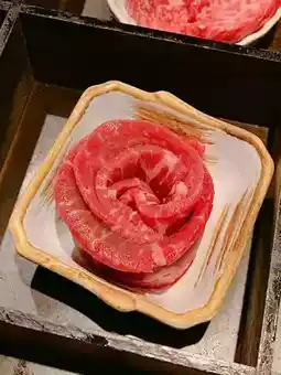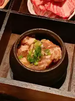 Wagyu Sukiyaki ๐ฅฉ ร la carte $98 ๐ฐ Staff sear the wagyu on the spot with a torch ๐ฅ then dip it in black truffle raw egg yolk sukiyaki sauce ๐ฅ and place it on top of white rice ๐ The wagyu is tender with a rich meaty flavor ๐