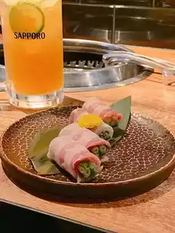 Pork Hakata Green Onion Roll ๐ ร la carte $58 ๐ฐ Pork wrapped around grilled green onions ๐ฑ The refreshing green onion segments balance the fattiness of the pork belly โบ๏ธ