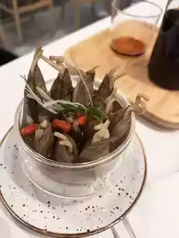 The razor clams are soaked in fermented rice wine, large in size, each bite is full of meat, with a strong wine aroma. The clam meat is sweet with a hint of saltiness, very refreshing!