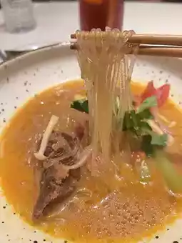 The rice noodles are smooth and absorb the soup well. The broth is sour and refreshing, light and invigorating.